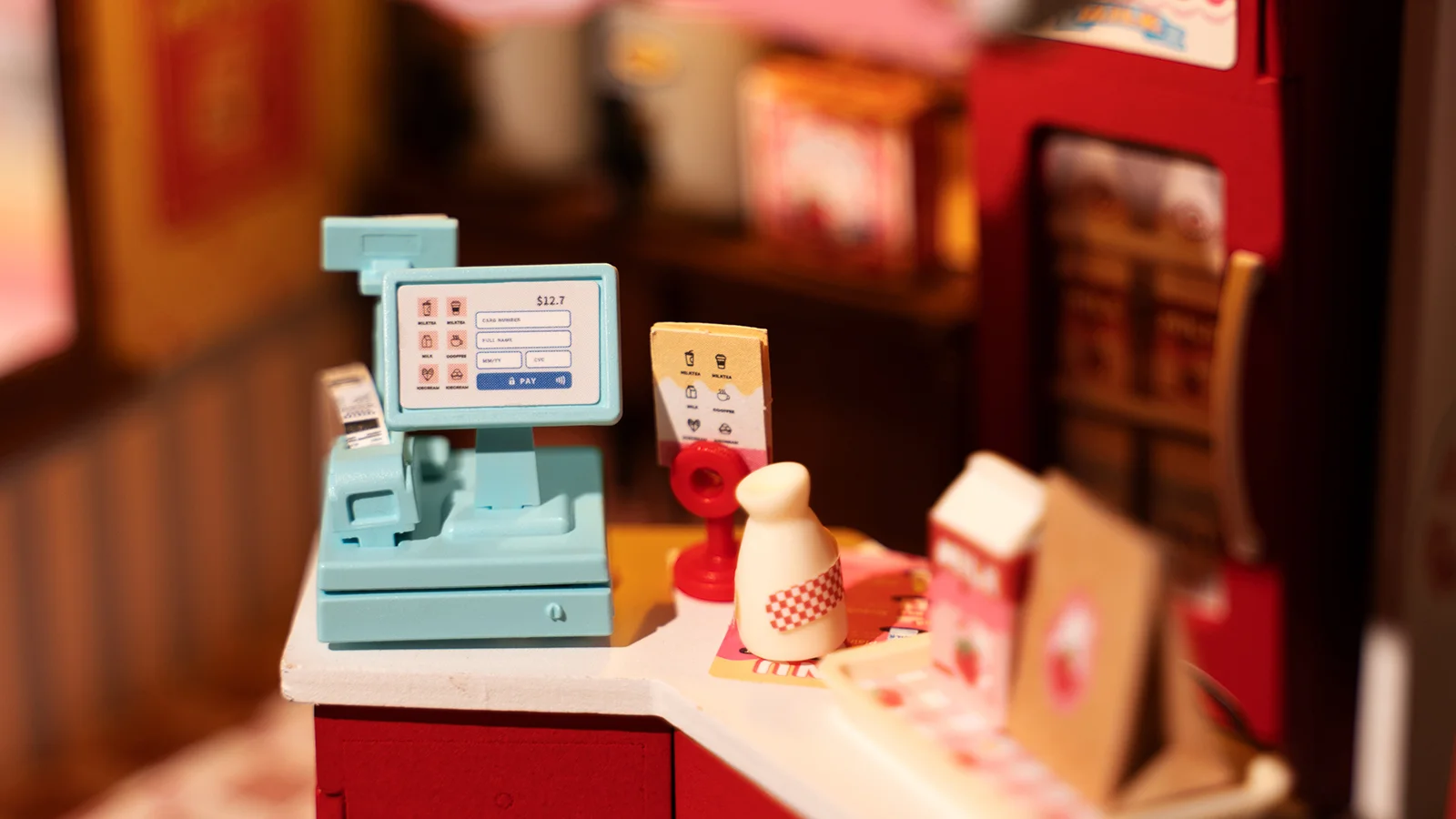 ROEDS034 ROBOTIME Rolife Food Box Shop DIY Miniature Strawberry Milk Box House Kit