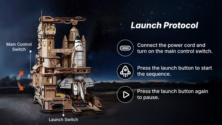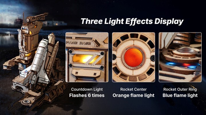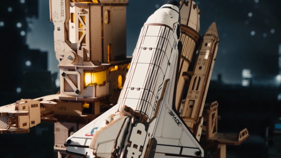Blast off into space with the ROKR Space Shuttle, a 3D wooden puzzle that captures the iconic craft poised on a moving mechanical platform. Commence countdown and get ready for liftoff!